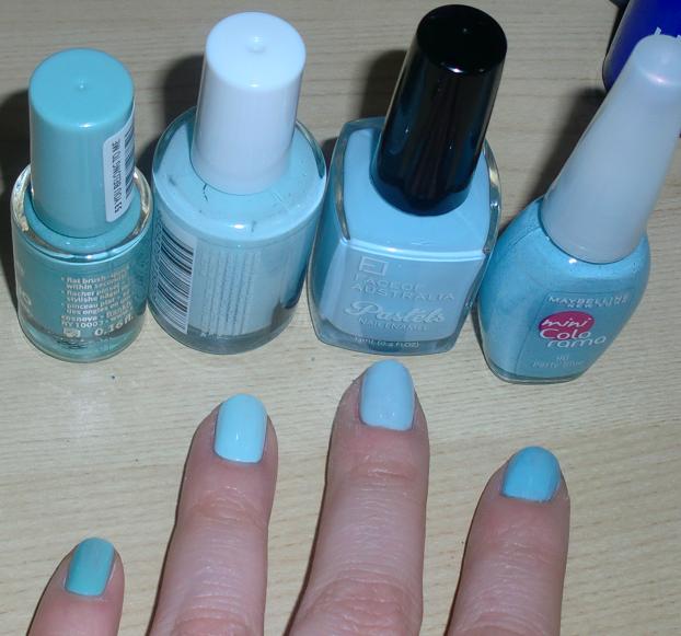| L-R: Essence You Belong To Me, NYC Baby Blue, FoA Once In A Blue Moon, Maybelline Party Blue |